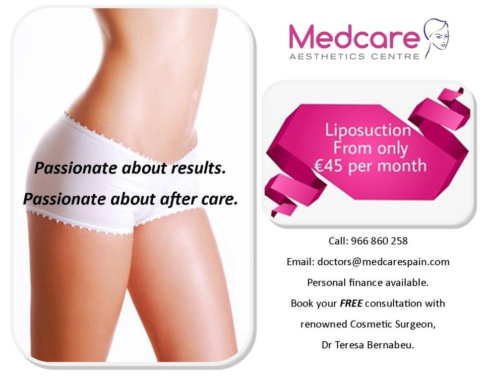 Call 966 860 258 or email doctors@medcarespain.com to book your appointment to discuss your personal finance package and meet the cosmetic surgeon Dr Teresa Bernabeu to discuss your requirements.